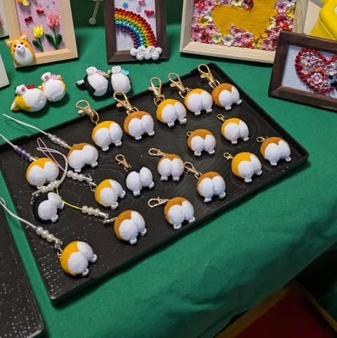 実家の両親がコーギーと暮らしている事から、コーギーをモチーフとした作品やワンコも付けれる髪飾り等も製作しています。